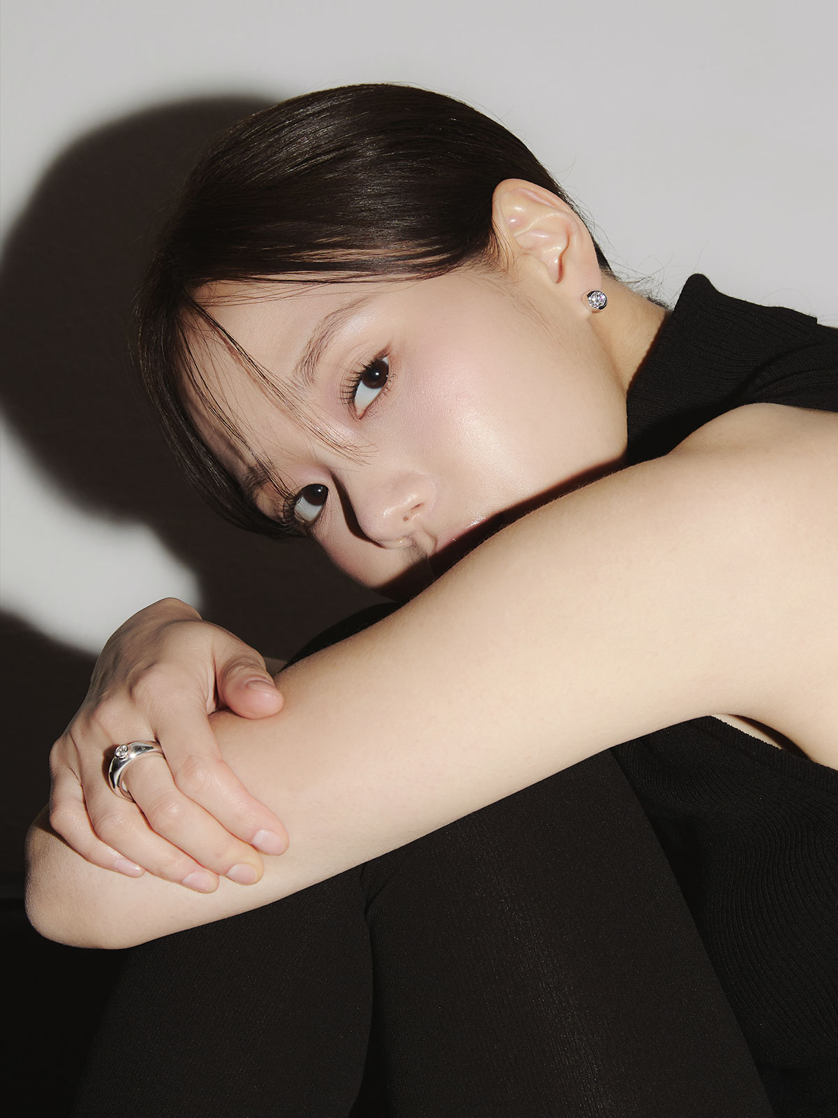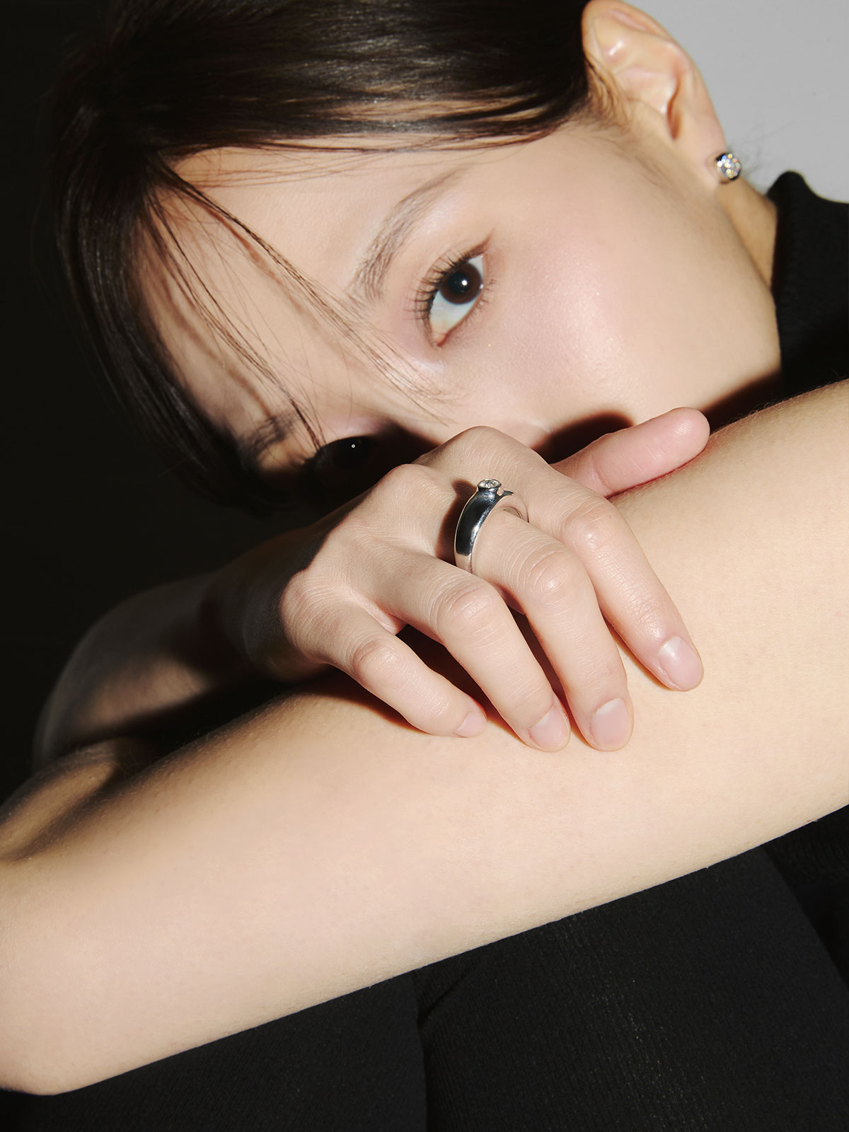 돔 형태의 곡선 위에 모이사나이트 원석을 세팅한 페블 링입니다. 미니멀한 디자인과 적당한 볼륨감이 조화를 이루어, 단독으로 착용해도 세련된 포인트를 줄 수 있습니다.