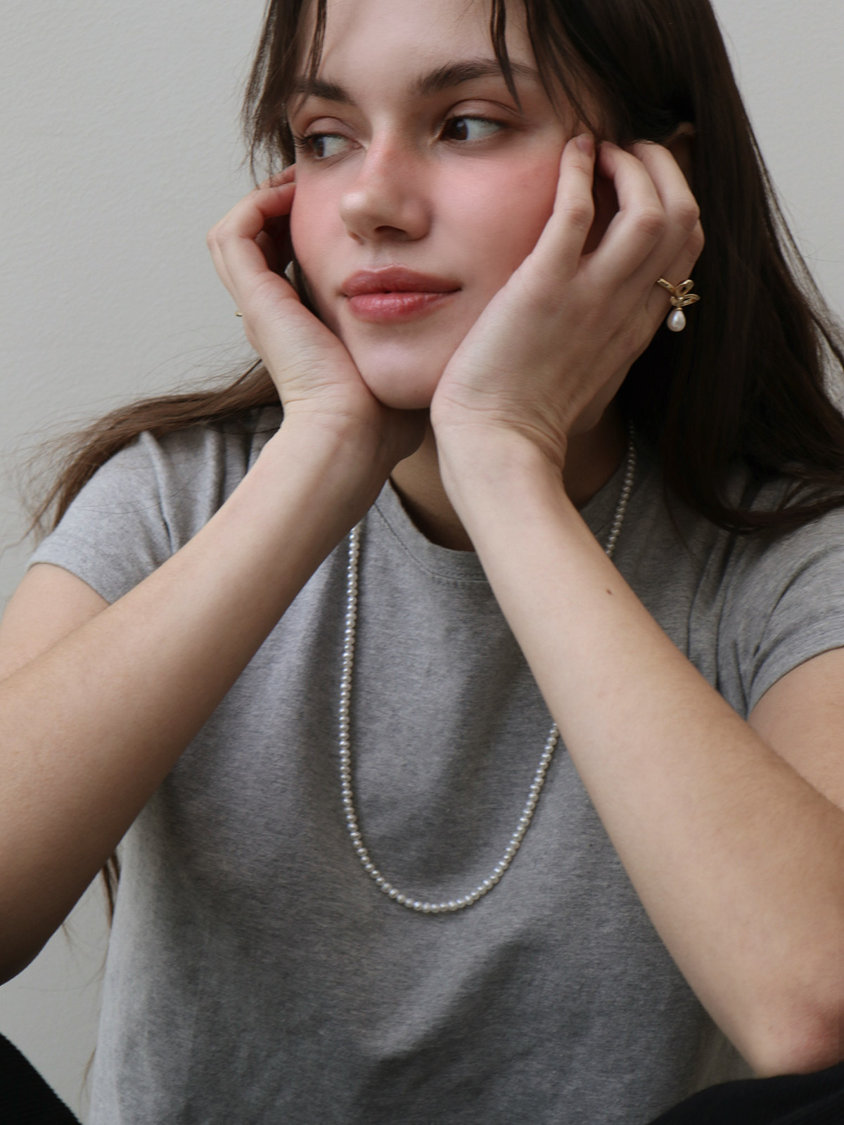 가장 높은 등급의 천연 담수진주를 엄선하여 제작한 담수진주 목걸이입니다. 3.5mm-4.0mm의 작은 진주들을 정성스럽게 엮어 완성도를 높인 특별한 아이템입니다. 풍부한 양의 천연 담수진주가 사용되어 평생 소장 가치가 있으며, 55cm의 넉넉한 길이에 5cm 연장선을 더해 다양한 스타일로 연출할 수 있는 활용도 높은 목걸이입니다.