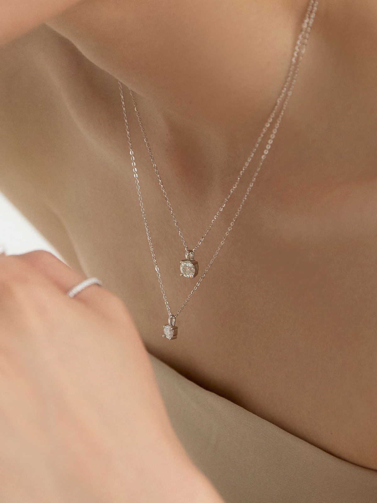 직접 제작한 모이사나이트 스톤으로 만든 라운드컷 4프롱 네크리스입니다. 당신의 품격을 높여줄 가장 클래식하고 세련된 4프롱 디자인과 뛰어난 반짝임으로 일상에 아름다움을 더하세요. 특별한 날, 특별한 당신을 위한 최고의 선물입니다.